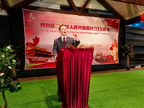 吕进大使在致辞中回顾新中国75载发展成就,宣介党的二十届三中全会精神,强调中瑙要携手努力,以时不我待的干劲,落实好两国元首重要共识,共同开创中瑙关系的美好明天。