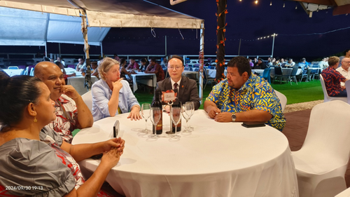 2024年9月30日,驻瑙鲁使馆隆重举行庆祝中华人民共和国成立75周年招待会。驻瑙鲁大使吕进,瑙鲁总统代表、教育部长阿斯特里奥·阿皮出席并致辞,磷酸盐部长、司法部副部长等内阁成员及瑙各界人士、外国驻瑙使节、中资机构及华侨华人200余人出席。